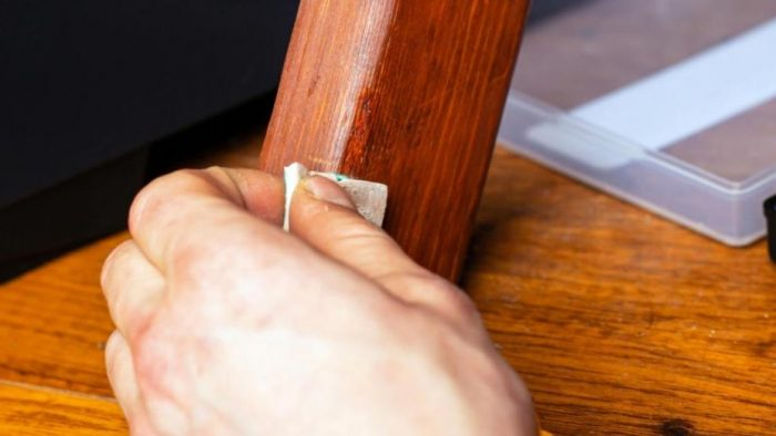 Sobald dies erledigt ist, streichen Sie die Mischung mit Naturbraun oder Bleistift (Kaffee) an und versuchen Sie, den gleichen Farbton wie die Möbel zu erhalten, die Sie reparieren möchten.