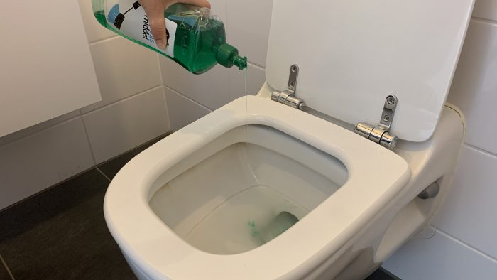 Bevor Sie den Klempner um Hilfe bitten, weil Ihre Toilette verstopft ist, gießen Sie eine Tasse Spülmittel in die Schüssel und lassen Sie es 15 Minuten lang ruhen. Gießen Sie dann den Inhalt eines Wasserkochers mit sehr heißem Wasser in die Schüssel: Der Korken sollte von selbst herauskommen!
