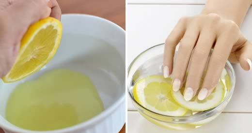 Nägel . Hellen Sie Ihre Nägel auf, indem Sie sie in Zitronensaft einweichen. Sie sind sehr nützlich, um Giftstoffe aufzulösen, die durch den Gebrauch von Tabak und minderwertigem Nagellack entstehen.