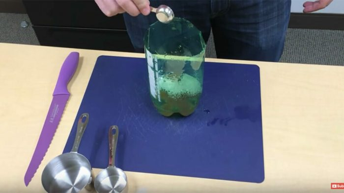 - Entfernen Sie den Flaschenverschluss. Drehen Sie das obere Drittel um und drücken Sie es nach unten, als ob Sie die Flasche verschließen würden. Stellen Sie sicher, dass alles fest verschlossen ist.