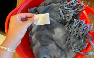 Wenn die Lösung fertig ist, gießen Sie sie in eine Sprühflasche, schütteln Sie sie gut und sprühen Sie sie direkt auf Stoffe, zum Beispiel auf Sofas, oder auf Kissen, Stühle und Vorhänge, die die ersten Dinge sind, die riechen und Gerüche absorbieren.