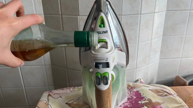 Kalk entsteht, wenn hartes Wasser mit Eisen reagiert. Diese Ablagerungen können sich im Bügeleisentank ansammeln und die erzeugte Dampfmenge verringern. Essig wirkt als Entfettungsmittel und löst angesammelten Kalk, wodurch die Leistung des Bügeleisens verbessert wird.