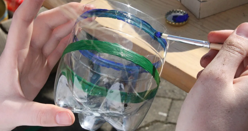 - Schneiden Sie die Flasche in zwei Hälften