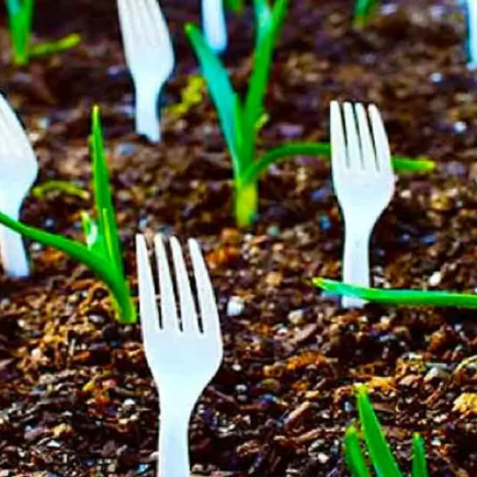 Wurde Ihr Garten von Schädlingen heimgesucht? Möchten Sie es schützen, indem Sie auf den Einsatz chemischer Düngemittel verzichten? Stellen Sie die Plastikgabeln erhobenen Hauptes in Ihren Garten. Sie sind vielleicht nicht die Vogelscheuchen wert, die in der Landwirtschaft verwendet werden, aber Gabeln verhindern wirksam, dass einige Schädlinge Ihre Pflanzung angreifen. Und hier ist eine neue Möglichkeit, das Einwegbesteck aus Plastik zu recyceln, das mit Lebensmitteln zum Mitnehmen oder nach Hause geliefert wird.
