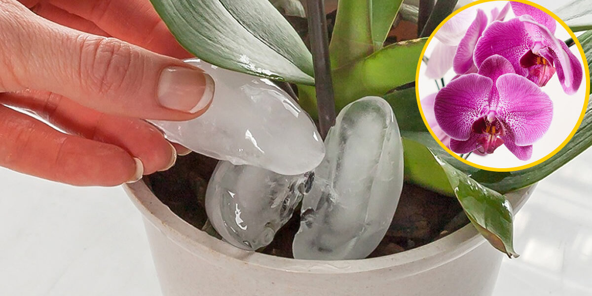 Legen Sie ein paar Eiswürfel auf das Orchideensubstrat und warten Sie, bis diese vollständig geschmolzen sind.