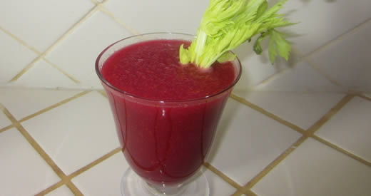 Für die Zubereitung benötigen Sie: 1 Rote Bete, 1 Stange Sellerie, 3 rote Äpfel, ein halbes Glas Wasser.