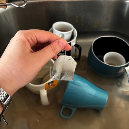 Einen Teebeutel in ein Spülbecken voller schmutzigem Geschirr tauchen: der unerwartete Grund