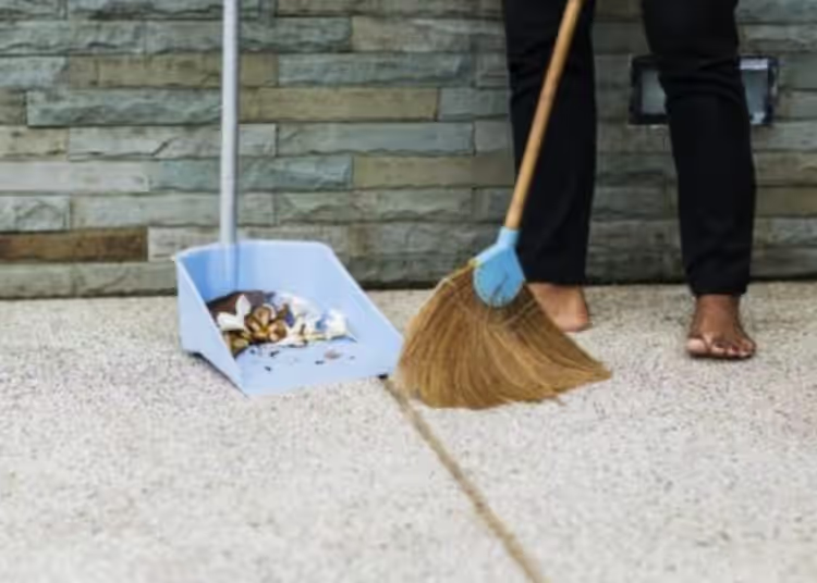 Als erstes müssen Sie alle Ablagerungen und Ablagerungen entfernen, die sich auf der Bodenoberfläche angesammelt haben. Benutzen Sie dazu einfach einen Outdoor-Besen oder Staubsauger.