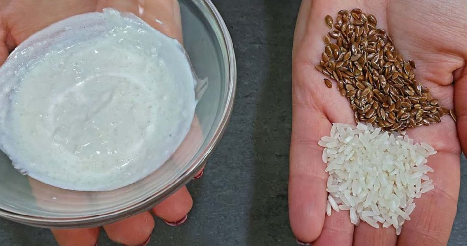 Wir nehmen eine weitere Schüssel und geben 2 Esslöffel des gewonnenen Gels hinein, fügen einen Esslöffel Reispulver hinzu und mischen es, dann einen Esslöffel Joghurt und mischen es erneut.