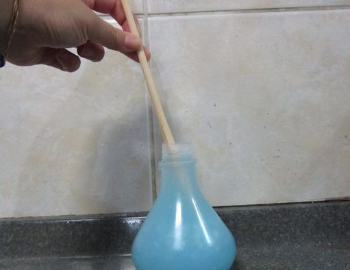 - Geben Sie das Wasser in eine Schüssel, mischen Sie das Bikarbonat, geben Sie dann Weichspüler, Essig und Alkohol hinzu und vermischen Sie alles gut.