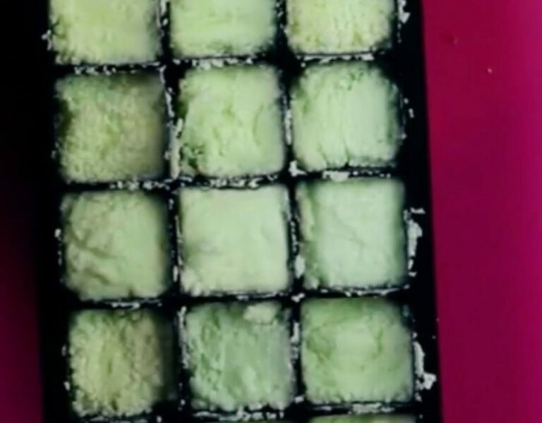 Mithilfe eines Löffels mischst du alles gut durch und gibst die Masse dann in eine Eiswürfelform. Das Gute daran: Die WC-Tabs bekommen dadurch direkt eine praktische und feste Form. Gleichzeitig entsteht eine Kruste, welche die Tabs zusammenhält.