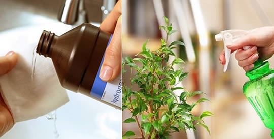 Schimmel und Pilze . Geben Sie 10 Esslöffel Wasserstoffperoxid in einen Liter Wasser und besprühen Sie Ihre Pflanzen täglich mit etwas von dieser Lösung, um Pilze und Schimmel zu verhindern.