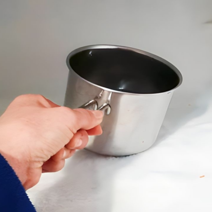 Wie funktioniert die   Topfmethode  ? Das ist ein   ganz einfacher  Trick: Füllen Sie einfach einen   Topf   mit   heißem Wasser   . Seien Sie jedoch vorsichtig, das   Wasser   muss   heiß sein   und darf nicht   kochen   , sonst besteht die Gefahr eines   Thermoschocks   im Inneren des   Gefrierschranks   , der zu möglichen   Unfällen und Fehlfunktionen führen kann   .