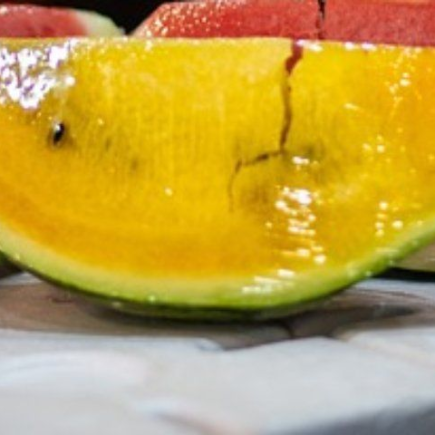 Gelbe Wassermelone, Frucht von Pfropfen und jahrelanger Arbeit, aber ihr Geschmack erinnert an Mango!