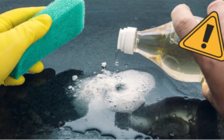 Weißer Alkoholessig hat eine reinigende und fleckenhemmende Wirkung. Gießen Sie zur Verwendung ein halbes Glas mit 1 l Wasser in einen Krug. Gut mischen und in eine Sprühflasche füllen. Sprühen Sie die Lösung auf die gesamte Oberfläche und spülen Sie sie mit lauwarmem Wasser ab