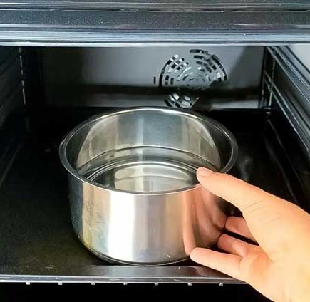 Wie reinige ich das Innere des Ofens mit einer mit Wasser gefüllten Pfanne?