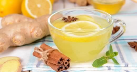 Das Wasser zum Kochen bringen, dann die gehackten Zitronen, Zimt und Ingwer hinzufügen und einige Minuten kochen lassen. Abseihen und zum Süßen etwas Honig hinzufügen (nicht mehr als einen Teelöffel). Gut mischen.