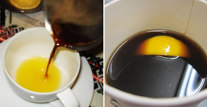 Die Zubereitung des Mittels auf Kaffee- und Zitronenbasis ist wirklich einfach. Nach der Zubereitung des Kaffees (es eignen sich sowohl Espresso als auch langer Kaffee) den Saft einer halben Zitrone hinzufügen und vor dem Trinken vermischen. Ideal wäre es, auf Zucker, Honig oder andere Süßstoffe zu verzichten.