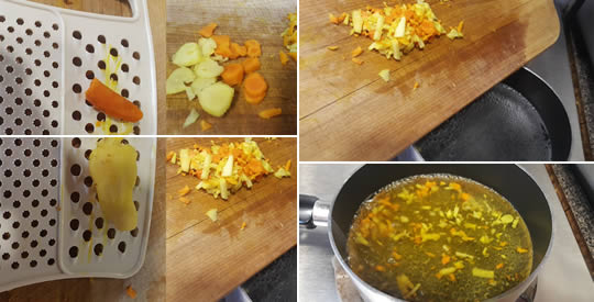 Das Wasser zum Kochen bringen, dann vom Herd nehmen und Ingwer und Kurkuma hinzufügen. Warten Sie einige Minuten, filtern Sie dann und fügen Sie Honig und Zitronensaft hinzu. Vor dem Trinken gut mischen.