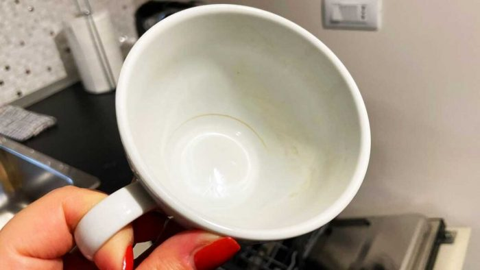 Probieren Sie diese Mittel zunächst in einer versteckten Ecke Ihrer Tassen aus, um sicherzustellen, dass Sie sie nicht beschädigen.