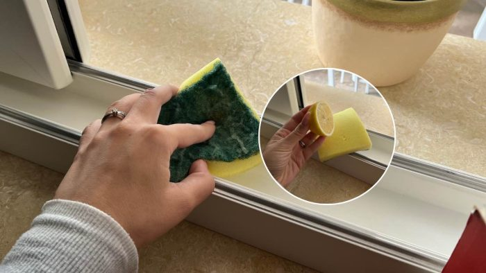Mit der Schwammtechnik sehen Sie keinen Schmutz mehr zwischen den Fensterritzen
