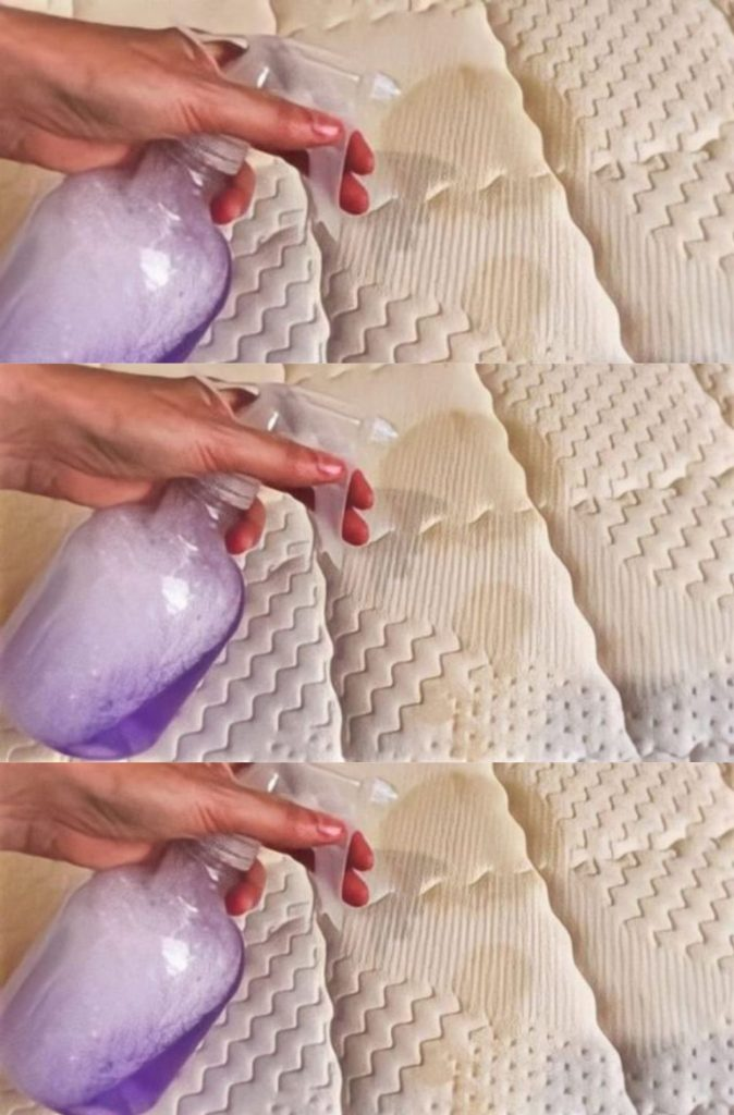 Schütteln Sie die Lösung gut und sprühen Sie sie auf die Matratze, wo die Flecken sind. 2 Minuten einwirken lassen und dann mit einer Zahnbürste schrubben. Nehmen Sie die Zahnbürste am Griff und führen Sie sie kräftig über den zu behandelnden Fleck. Es bildet sich ein leichter Schaum, den Sie mit derselben Zahnbürste entfernen können . Sobald dies erledigt ist, wischen Sie es mit einem feuchten Tuch ab und lassen Sie es trocknen. Der Unterschied wird am Ende des Verfahrens spürbar sein und Sie werden feststellen können, dass der Fleck auf der Matratze praktisch verschwunden ist.