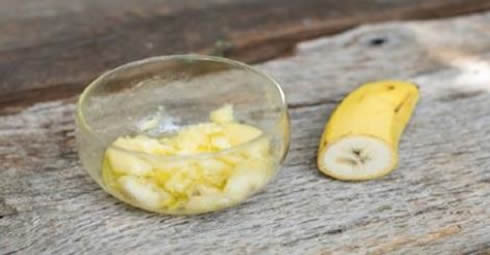 Sie benötigen 1 Banane und 3 Tropfen Mandelöl. Mahlen Sie die Banane und vermischen Sie sie mit dem Mandelöl, bis eine glatte Lösung entsteht.