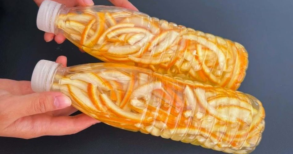Versuchen Sie, Orangenschalen in einer Plastikflasche in Wasser zu tauchen. Auf diese Weise sparen Sie viel Geld.