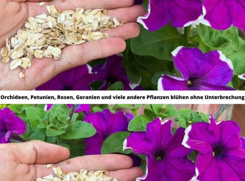 Wenn Sie die Blumen im Garten füttern möchten, können Sie eine Lösung aus 10 Liter Wasser mit einer Tasse Haferflocken zubereiten . Dann lässt man es drei Tage lang ziehen, wobei man jedes Mal umrührt, und dann wird dieses Wasser verwendet, um die Pflanzen zu bewässern.