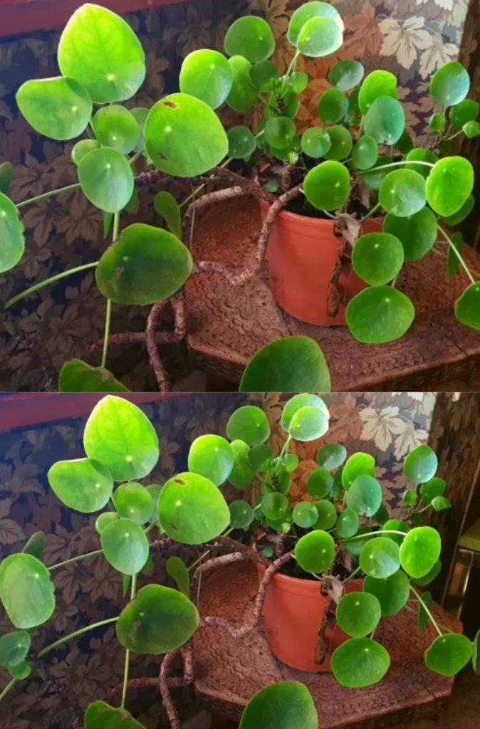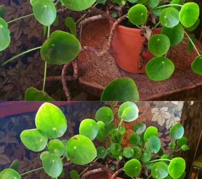 Belichtung: Pilea bevorzugt indirektes Licht von mittlerer oder hoher Intensität. Sie neigt dazu, ihre Zweige zu der Seite zu neigen, die mehr Licht erhält. Daher ist es ratsam, sie regelmäßig zu drehen, damit sie symmetrisch wächst. Wenn die Blätter jedoch starkem, direktem Licht ausgesetzt sind, verbrennen sie leicht. Je schwächer das Licht in der Ecke ist, in die Sie die Pflanze stellen, desto weniger dicht wird sie wachsen und desto kleiner werden die Blätter.