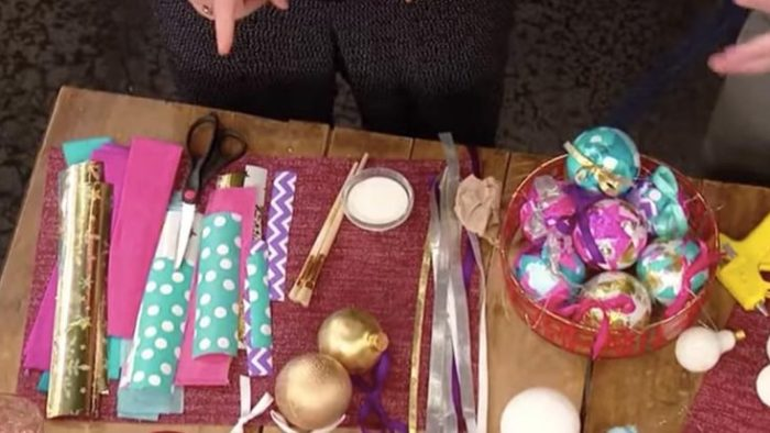 Finden Sie es nicht einfach toll, wie hell und farbenfroh diese Ornamente in der Rachael Ray Show aussehen? Ich fand das eine sehr clevere Idee und ein tolles Hobby für meine Familie über die Feiertage. Ich konnte alle in dieses kleine Projekt einbeziehen und am Ende hatten wir ein paar ziemlich coole Dekorationen, die wir an unseren Baum hängen konnten, und wir waren kurz davor, das Geschenkpapier zu recyceln!