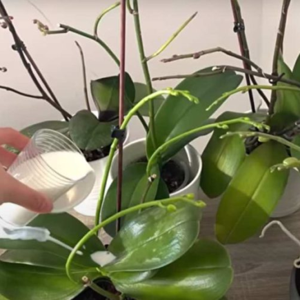 Indem wir einen Löffel  Milch  in eine  1-Liter- Flasche Wasser mischen, können wir mindestens einmal im Monat 8 Teelöffel der Mischung in den Boden geben und dann die restliche Flüssigkeit in eine Sprühflasche gießen.