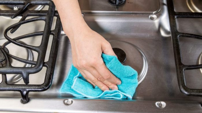 Dazu gehört auch die Reinigung der Theke. Durch die Verwendung einer Zahnpasta, die keine abrasiven Bestandteile wie Granulat enthält, können Sie die Oberfläche rund um den Herd besonders gut reinigen.