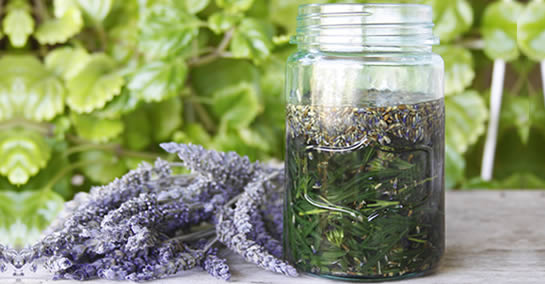 Trennen Sie die Blüten von den Stielen und pürieren oder zerdrücken Sie sie dann, um die Freisetzung des ätherischen Öls zu erleichtern. Gießen Sie die Blumen in ein Glas und bedecken Sie es mit Pflanzenöl.