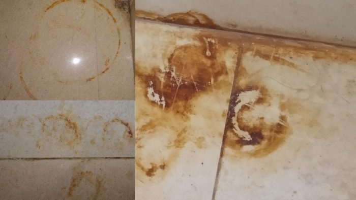 Nicht zu vergessen das Wasser, das Kalkstein und Mineralien wie Kalzium und Eisen enthält, die bei Kontakt mit der Luft Flecken auf Möbeln, Fliesen und Bodenfugen hinterlassen, die mit der Zeit nur sehr schwer zu entfernen sind.