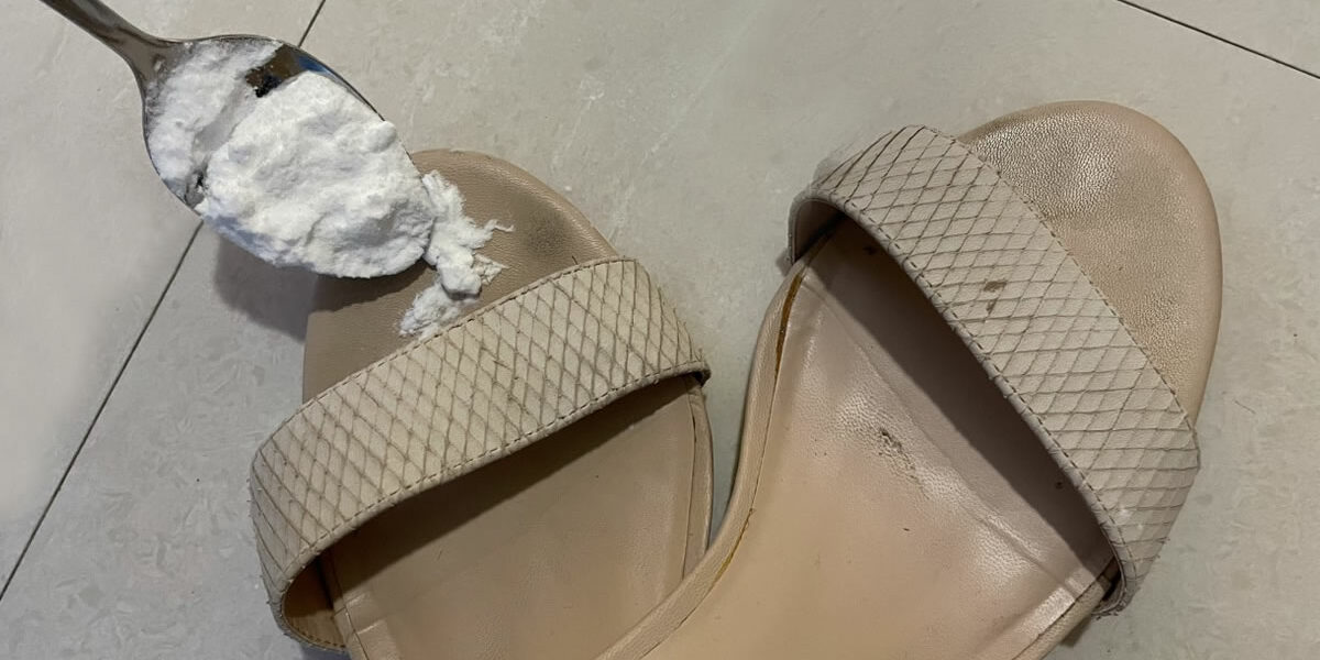 Sie können zum Reinigen von Ledersandalen Backpulver verwenden. Wenn es jedoch behandelt ist, entfernen Sie es mit einem mit Wasser und Essig angefeuchteten Tuch. Diese Kombination kann bei diesem Material Wunder bewirken. Lassen Sie das Backpulver einen ganzen Tag einwirken, bevor Sie es entfernen.