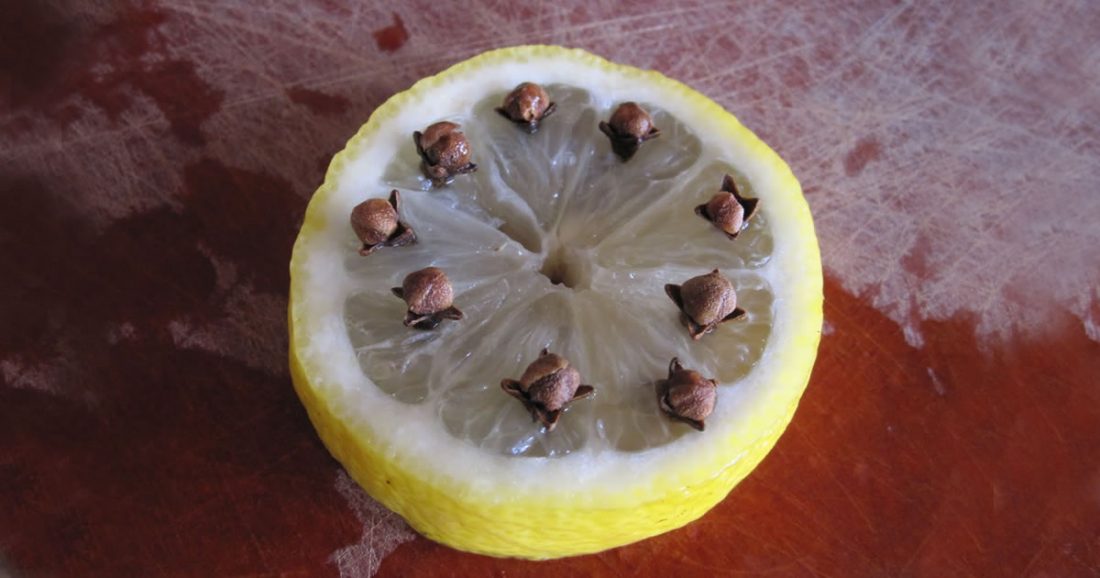Alles, was Sie brauchen, ist eine Zitrone und eine Handvoll Nelken . Die Zitrone halbieren und einzeln in das Zitronenmark geben.