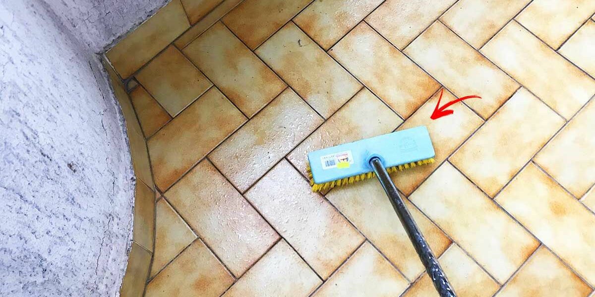 Befeuchten Sie den Boden und streuen Sie ein wenig hausgemachtes Geschirrspülmittel auf verschiedene Stellen des Balkons. Nehmen Sie dann einen Besen und schrubben Sie ihn kräftig, um ihn gründlich einzuseifen und zu entfetten.