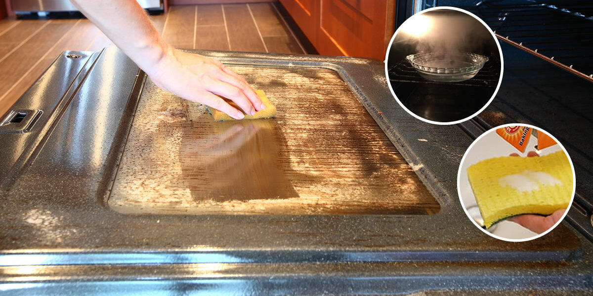 - Reinigen Sie das Glas der Backofentür mit Backpulver