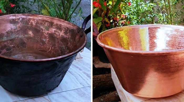 Um Flecken zu vermeiden, können einfache natürliche Maßnahmen ergriffen werden, die es uns ermöglichen, Kupfer- und Messingtöpfe und -gegenstände so glänzend zu machen, dass sie wie neu aussehen.