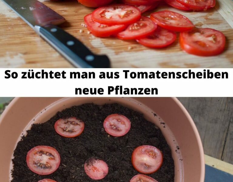 2. Fülle einen Blumentopf mit Erde und lege die Tomatenscheiben darauf, als wäre es eine Pizza. Man kann es natürlich auch in einem handelsüblichen Blumenkasten machen.