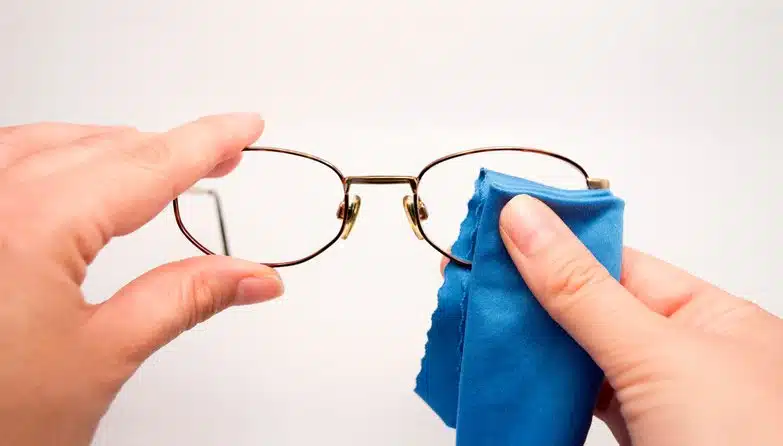 3) Sprühen Sie auf Ihre Linsen und wischen Sie sie dan