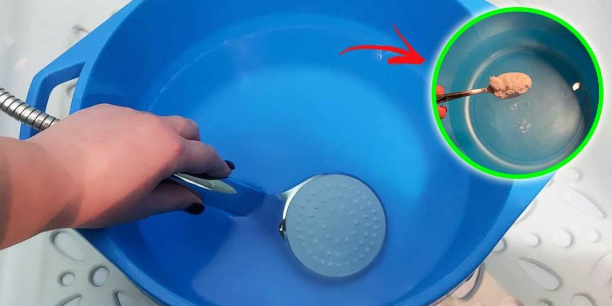 Mischen Sie einfach 2 Tassen Backpulver in einem Behälter mit kochendem Wasser und tauchen Sie den Duschkopf in diese Lösung.