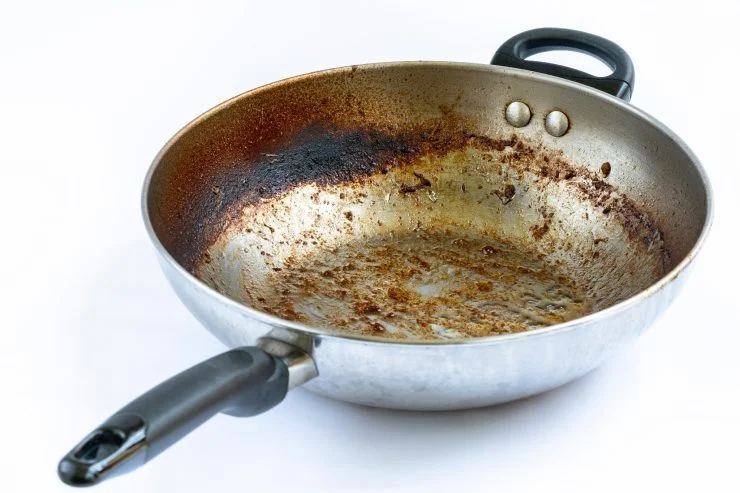 Folgendes benötigen Sie zum Reinigen einer verkrusteten Pfanne: