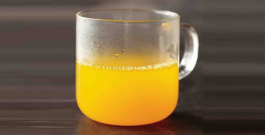 Um einen Kurkuma-Aufguss zuzubereiten, kochen Sie 2 Gramm Kurkuma-Pulver in einer Tasse Wasser. Vor dem Frühstück heiß trinken.