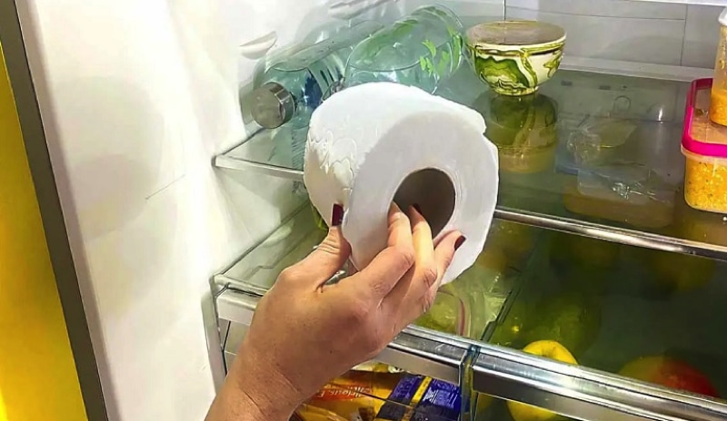 Toilettenpapier kann große Mengen Feuchtigkeit und unangenehme Gerüche aus dem Kühlschrank absorbieren.
