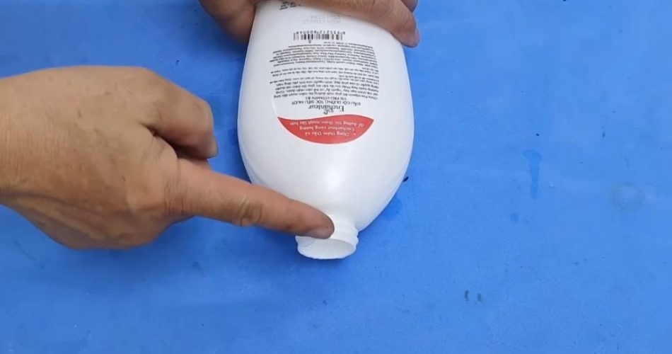 Das erste, was Sie tun müssen, ist, eine dieser Shampooflaschen zu nehmen und den Verschluss mit einer Bügelsäge abzuschneiden . Im nächsten Schritt besorgen Sie sich eine Pappröhre und stecken diese in den gerade ausgeschnittenen Korken (daher unbedingt auf die Maße achten, Anm. d. Red.).