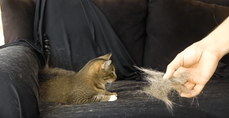 Besorgen Sie sich eine Bürste, einen Mini-Silikonschaber, Nylonstrumpfhosen oder einen feuchten Gummihandschuh oder einen mit Wasser getränkten Schwamm. Kurz gesagt, entscheiden Sie sich für etwas, das die Haare verfängt.