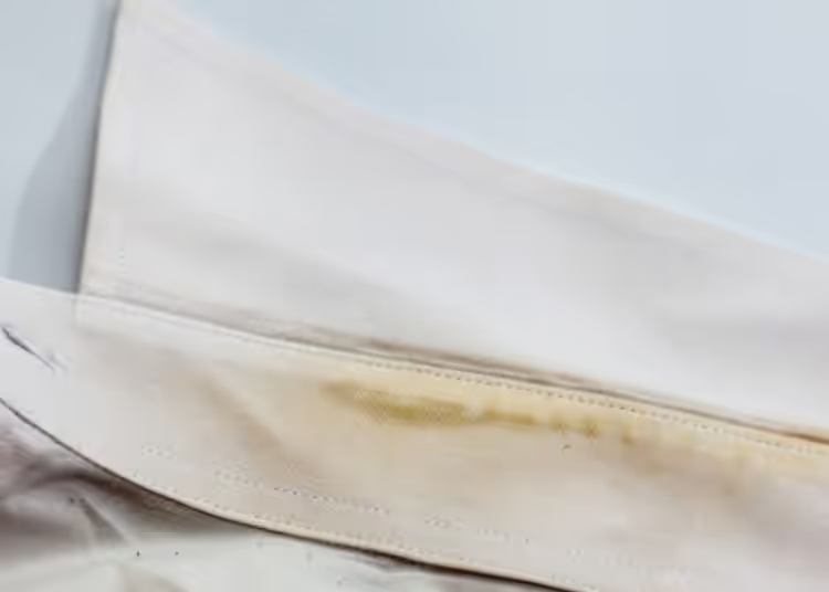 Bevor wir uns mit den effektivsten Methoden zum Entfernen gelber Flecken aus weißen Hemden befassen, gibt es ein paar Schritte, die Sie unternehmen können, um gelben Schweißflecken vorzubeugen. In den Achselhöhlen können Sie beispielsweise Flecken auf Ihrem Hemd vermeiden, indem Sie ein Deodorant verwenden, das Schweiß absorbiert und die Haut atmen lässt. Sie können das gleiche Produkt auch auf den Halsbereich auftragen. Wenn Sie es nicht auf die Handgelenke und den Hals auftragen möchten, können Sie Talkumpuder darüber streuen, das die Funktion hat, Schweiß zu absorbieren. In jedem Fall können Sie die Innenseite des Hemdes mit transparenten Aufklebern versehen, um es vor dem Vergilben zu schützen.