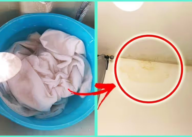 Legen Sie das betroffene Gewebe daher in eine  Schüssel mit sehr heißem Wasser  und  1 Glas Natriumpercarbonat  und lassen Sie es mindestens 5 Stunden einweichen.